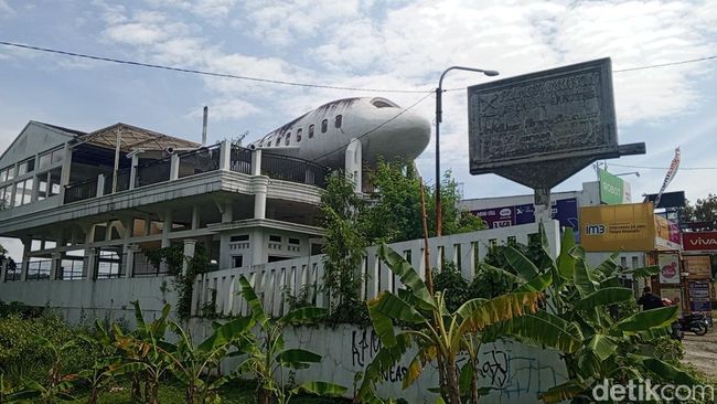 Berdasarkan hasil pantauan detikJabar belum lama ini di lokasi tersebut, memang pesawat yang berada di atas bangunan yang dominan berwarna putih itu ukurannya cukup besar dan tentu terlihat jelas dari jalan raya. Di luar bangunan hanya terpampang tiang yang bertuliskan 'RUMAH MAKAN NERARAY GANJENG'.