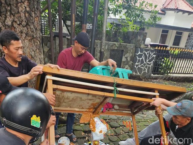 Dari foto-foto yang diterima detikJabar, selain gerobaknya yang terguling, kaca gerobak pecah, piring berhamburan, bumbu serta panci siomay juga ikut jatuh dan berserak.