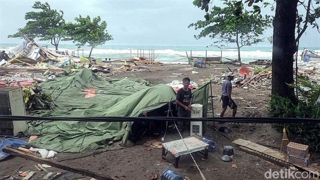 "Ambruk saat kejadian banyak warga di dalam, kita evakuasi dulu, kita larikan ke pinggir pantai. Saat angin besar tadi puing sisa-sisa pembongkaran ini beterbangan khawatirnya melukai warga. Ada puing-puing yang terbang, seperti asbes dan meja, sampai ke seberang jalan," ungkapnya kepada detikJabar.