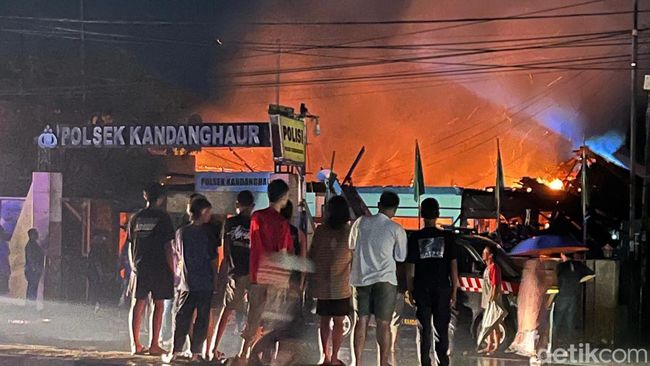Kebakaran hebat melanda Kantor Kepolisian Sektor Kandanghaur, Kabupaten Indramayu pada Kamis (6/2/2025). Warga sempat mendengar adanya ledakan.