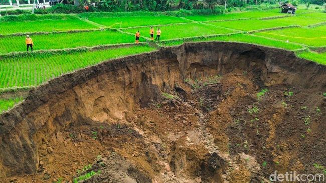 "Dampak gerakan tanah 7.000 meter persegi areal persawahan rusak," kata Wafid dalam keterangan tertulis yang diterima detikJabar, Jumat (7/2/2025).