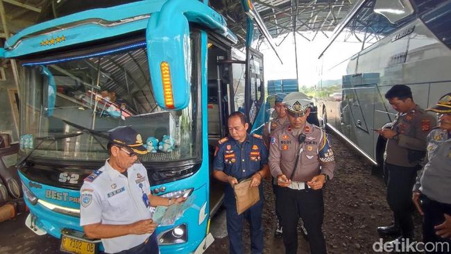 Pantauan detikJabar, Polisi dari Satlantas Polres Ciamis bersama Dinas Perhubungan melakukan pemeriksaan Bus Pariwisata di PO Bus Best Premium di Imbanagara. Ada pun yang diperiksa mulai kelengkapan kendaraan, kondisi ban, sistem pengereman, hingga aspek keselamatan lainnya. Petugas dari Dokkes Polres Ciamis juga memeriksa kesehatan sopir dan awak angkutan.