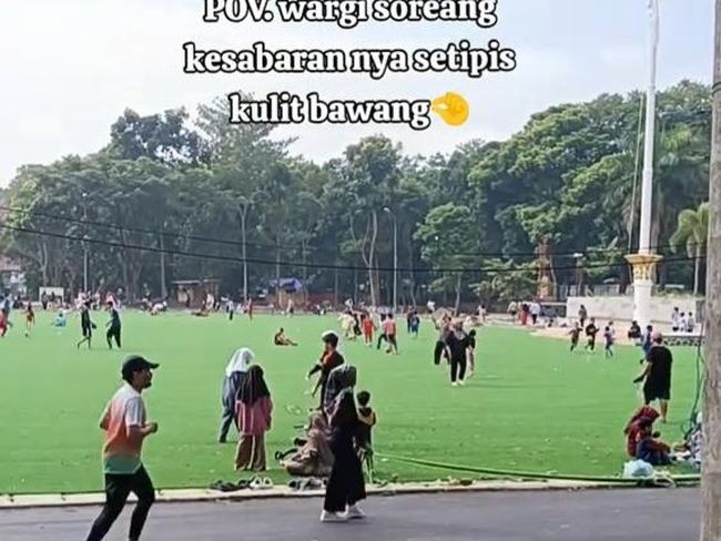 Ramai di sosial media Lapangan Upakarti, Pemkab Bandung, Soreang digunakan masyarakat untuk beraktivitas hingga olahraga. Padahal area tersebut saat ini masih dalam perbaikan.