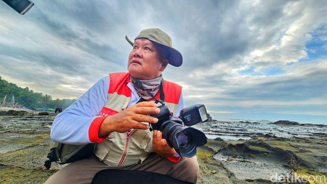 Jauh sebelum ponsel berkamera dan kamera mirrorless menjamur, fotografer seperti Sajudin adalah bagian tak terpisahkan dari wisata pantai. Wisatawan, terutama keluarga, rela antre untuk mendapatkan cetakan foto instan berlatar belakang lautan luas dan tebing khas Karang Hawu.