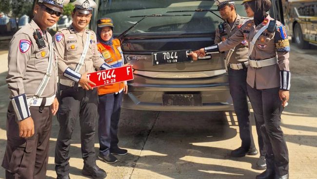 Bus itu ditilang oleh Polres Subang saat melakukan kegiatan ramp check. Mendapati adanya pelanggaran itu, polisi langsung menindak dengan meminta pengemudi bus mengganti pelat sesuai aslinya.
