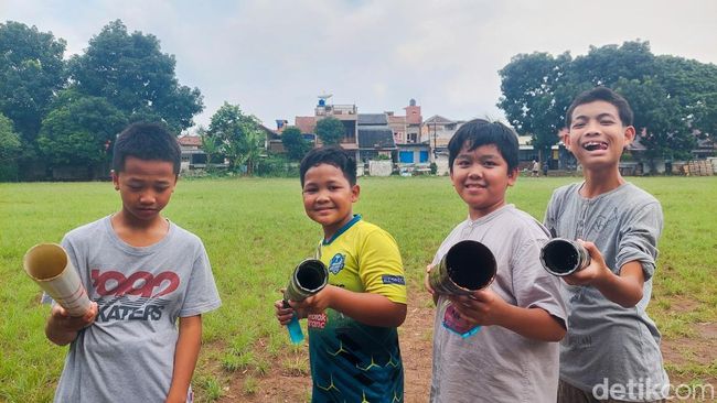 "Lagi main lodong paralon," kata Afnan, bocah SD yang rumahnya tak jauh dari tempat mereka ngabuburit, Minggu (2/3/2025).