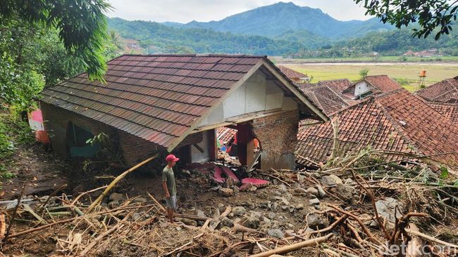Pantauan detikJabar di lokasi, sejumlah rumah rusak berat. Material longsor berupa tanah, bebatuan, dan batang pohon memenuhi halaman permukiman warga. Salah seorang warga, Sujatna (50), menceritakan detik-detik saat tanah longsor menerjang rumahnya.