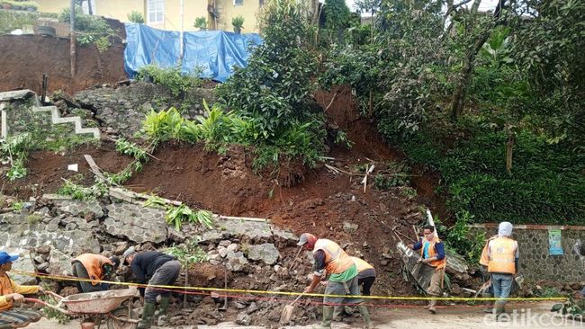 "Kejadiannya masuk ke dalam laporan saya jam 10 tadi. Ini semua akibat intensitas hujan yang deras dan tinggi. Jadi kan ini tembok jadi masih bertahan. Ini memang masuk daerah rawan longsor, itu dari Pamulihan sampai dengan Ciherang," ujar Atang kepada detikJabar di lokasi.