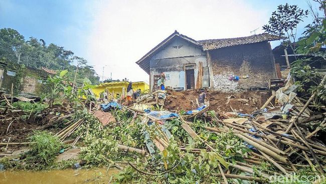 "Hujan dengan intensitas tinggi dan disertai angin kencang mengakibatkan tebing kolam longsor merusak sebagian bangunan 2 rumah. Dua keluarga mengungsi ke rumah kerabat terdekat," ungkap Kepala Pelaksana BPBD Ciamis Ani Supiani.