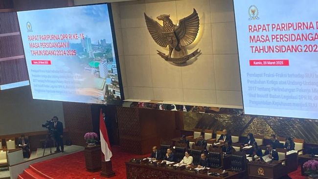 DPR RI resmi mengesahkan Rancangan Undang-Undang tentang Perubahan atas Undang-Undang Nomor 34 Tahun 2004 tentang Tentara Nasional Indonesia atau RUU TNI menjadi undang-undang. Keputusan ini diambil dalam rapat paripurna yang dihadiri oleh sejumlah menteri.