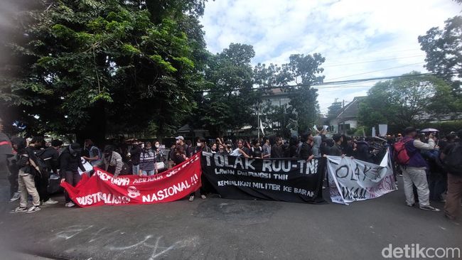 Ditemui di lokasi, koordinator aksi dari Front Mahasiswa Nasional cabang Bandung Raya, Ainun Mardiah mengatakan massa aksi menuntut agar RUU TNI yang baru saja disahkan untuk dibatalkan. Terlebih, ia mengatakan, perumusan RUU tersebut dilakukan secara tertutup dan tanpa melibatkan masyarakat.