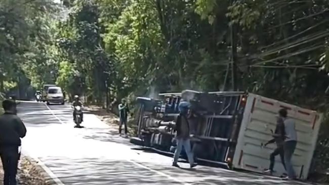 Seorang pengendara sepeda motor tewas tertimpa satu unit truk boks di Jalan Raya Kolonel Masturi, Lembang, Kabupaten Bandung Barat (KBB) pada Jumat (21/3/2025).