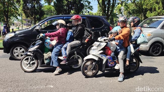 Terlihat pengendara motor yang merupakan pemudik membawa ransel dan sejumlah barang lainnya seperti kardus. Pemudik datang dari arah Tasikmalaya menuju Jawa Tengah. Dilihat dari plat nomor kendaraannya, tujuan pemudik tersebut ke wilayah Cilacap, Banyumas, Jawa Tengah.