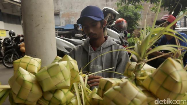 Iman mengungkapkan, dia membawa bahan baku daun kelapa janur untuk 900 biji kulit ketupat. Menurut Iman dia baru bisa menjual sekitar 200 biji daun ketupat.