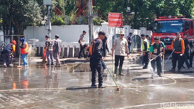Lalu pada Minggu pagi, giliran Wakil Wali Kota Cimahi, Adhitia Yudisthira membersihkan permukaan jalan yang menggunakan batu andesit itu lantaran banyak sisa minyak dan sampah bekas para pedagang.