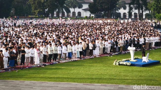 "Kronologinya lagi bersalaman sama pak gubernur.Kondisinya kebetulan jamaah membludak dari tahun kemarin ramai sekarang. Kebetulan mungkin gubernur (Dedi Mulyadi) baru pertama kali (salat di sini)," ujarnya.