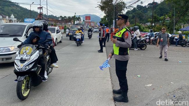 Polisi berjaga di sejumlah titik kepadatan, di antaranya di kawasan Gobing, yang merupakan titik pertemuan antara kendaraan dari kawasan wisata, kawasan perkotaan dan dari arah Bandung.