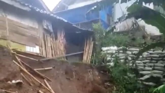 Hujan deras dengan intensitas tinggi menyebabkan tembok penahan tanah (TPT) di Kampung Neglasari, Desa Cikahuripan, Kecamatan Kadudampit, ambruk akibat longsor pada Kamis (3/4/2025) sore. Akibatnya satu rumah milik Mak Icoh (65) terancam terdampak.