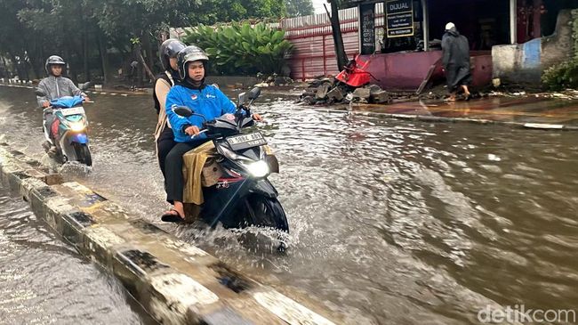 "Titik banjirnya banyak, kedalamannya lumayan," kata Iwan salah satu deiver ojek online (Ojol) kepada detikJabar.