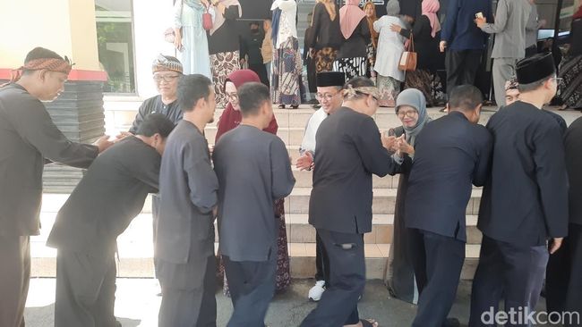 "Alhamdulillah saya mah tepat waktu, sengaja datang pagi biar gak kesiangan. Mau halal bilhalal sama pak Bupati pejabat dan lainya," kata salah seorang ASN, Didin.