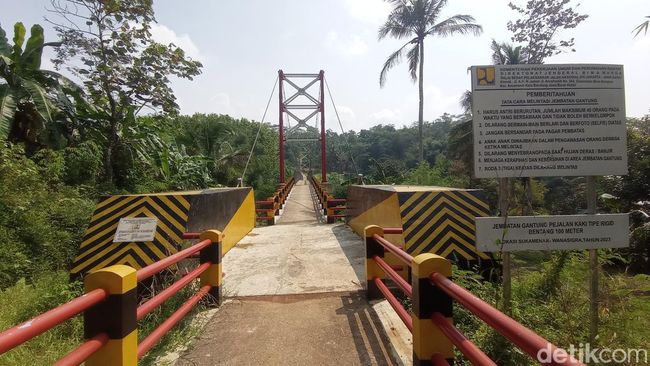 Pantauan detikJabar, untuk mengakses lokasi jembatan itu belum ada jalan yang bisa dilalui kendaraan atau sepeda motor. Untuk menuju jembatan, kita harus menyusuri jalan setapak menembus perkebunan warga. Jaraknya sekitar 400 atau 500 meter dengan kontur jalan yang curam.