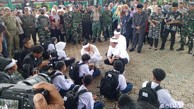 Puluhan siswa yang dinilai bermasalah di Kabupaten Sumedang, mulai dikerahkan ke barak Kodim 0610 Sumedang, pada Jumat (9/5/2025). Pendidikan kilat (Diklat) hari pertama ini dihadiri langsung Gubernur Jawa Barat Dedi Mulyadi.