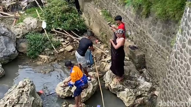 Proses evakuasi dilakukan menggunakan alat bantu karena derasnya aliran air di lokasi. "Pakai alat bantu lamit (semacam jaring kecil untuk menangkap ikan), soalnya kalau langsung susah, airnya deras," tambahnya.