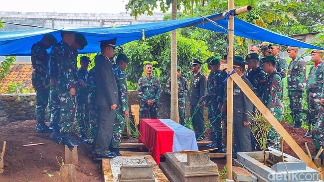 Jenazah Mayor CPL Anda Rohanda telah dimakamkan di Kampung Sukasantri, Desa Cinunuk, Kecamatan Cileunyi, Kabupaten Bandung, Selasa (13/5/2025). Proses pemakaman berlangsung secara militer.