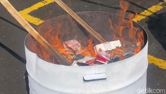 Sedangkan barang bukti uang palsu pecahan Rp100.000 sebanyak kurang lebih 100 lembar atau setara dengan Rp10 juta dibakar hingga hangus. Kasus uang palsu itu cukup menjadi sorotan lantaran guru hingga pensiunan polri menjadi korban. Uang palsu itu digunakan pelaku untuk penipuan dengan modus dukun pengganda uang.