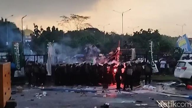 Untungnya petugas kepolisian yang berjaga perlahan berhasil meredam situasi hingga berangsur kondusif.