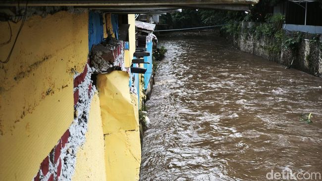 "Kalau debit air di atas gede, banjir pasti di sini, sudah pasti itu mah. Tapi kalau nggak terlalu gede hujannya, aman," katanya.