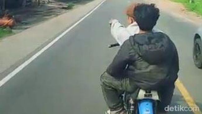 Dari video yang dilihat detikJabar, Senin (2/6/2025), nampak pemotor berboncengan berada di depan sopir truk tersebut. Kemudian pemotor tersebut tiba-tiba berhenti dan satu orang yang menggunakan sweater abu-abu menghampiri sopir tersebut.