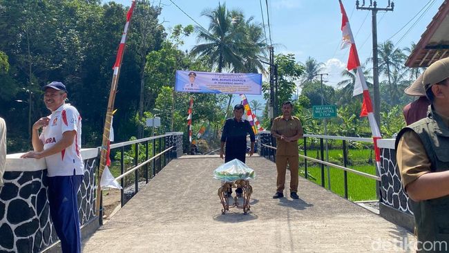 "Ini akses penghubung antar kampung, jadi jangan sampai amruk lagi. Makanya diperkokoh konstruksinya," ujarnya.