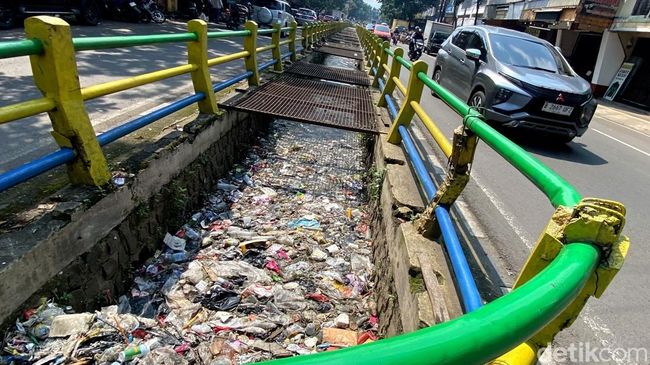 Pantauan detikJabar, Sabtu (7/6/2025) sampah yang didominasi sampah rumah tangga itu menutup aliran sungai di jalan itu. Aliran sungai tak mengalir karena tersumbat oleh tumpukan sampah itu.
