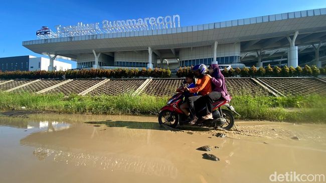 "Kondisinya memprihatinkan, sementara jalan rusak ini bersebelahan dengan stasiun kereta cepat," kata Agung salah satu pengendara motor.