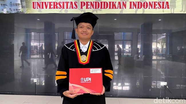 detikJabar berkesempatan berbincang dengan Rian. Pria berumur 27 tahun itu masih mengenakan toga dan jubah kebanggaannya. Kepada detikJabar, Rian juga menunjukkan map bukti kelulusannya sebagai magister dari UPI.