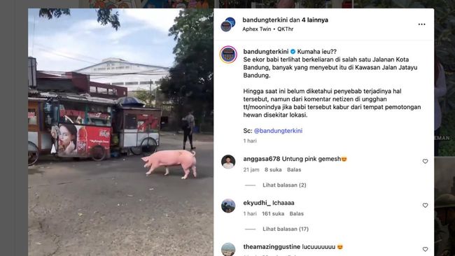 Peristiwa itu terjadi di Jalan Arjuna, Kecamatan Cicendo, Kota Bandung. Babi yang berkeliaran pada Senin (23/6) kemarin itu terekam kamera dan viral di media sosial.