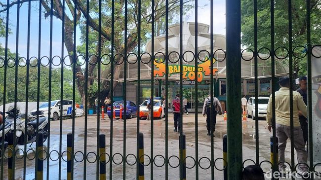Berdasarkan pantauan detikJabar, gerbang utama Bandung Zoo ditutup siang hari ini. Sejumlah petugas berjaga di depan gerbang, memberi pengumuman kepada pengunjung yang sudah terlanjur datang bahwa Bandung Zoo tak bisa dikunjungi.