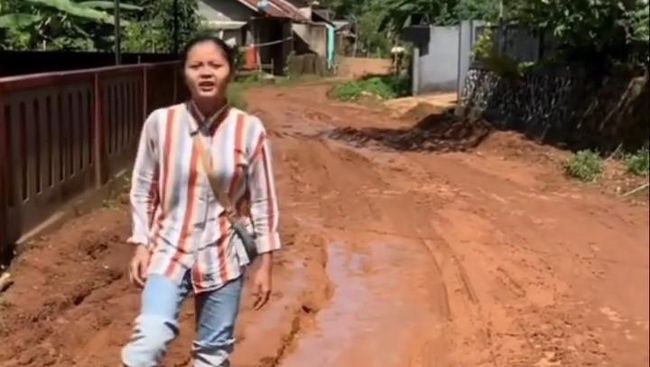 Dalam video berdurasi 19 detik yang viral di media sosial, sosok perempuan tersebut mengeluh dan mempertanyakan kapan perbaikan jalan yang menghubungkan Desa Cimaskara dan Desa Pamoyanan Kecamatan Cibinong akan segera diperbaiki.