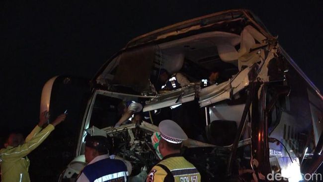 "Mobil bus ini menabrak daripada buntut truk tangki yang mana truk tengki membawa limbah kecap yang tidak terlalu berbahaya, kebetulan kejadian di bahu luar jalur tiga," ujar Kepala Induk Tol Cipularang, Kompol Djoko Prihantono ditemui di TKP saat evakuasi korban terjepit, Jumat (11/7/2025).
