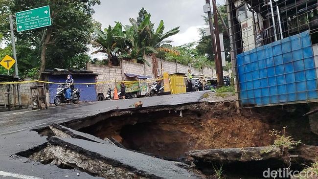 "Dugaan kami penyebabnya pelemahan kontur tanah akibat erosi oleh rusaknya saluran gorong-gorong dipicu hujan dengan intensitas tinggi semalam. Kita sudah assessment, ada bangunan yang terancam dan kita minta supaya dikosongkan dulu," kata Fithriandy.