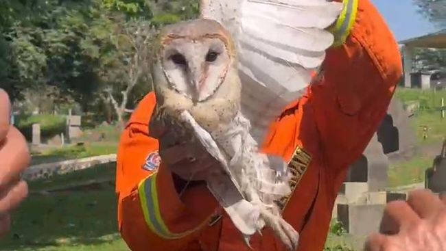 Pada akhirnya, benang yang menjerat putus usai bergesekan dengan benang dari layangan. Burung hantu itupun jatuh dan langsung dievakuasi petugas.