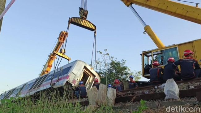 "Tadi malam dilakukan pengangkatan lima kereta yang anjlok dimulai jam 23.50 WIB sampai terakhir kereta kelima yang terakhir kereta pembangkit jam 07.15 WIB, atas nama kereta api sama Pak Menteri Perhubungan yang menyertai dari semalam bersama Dirjen Kereta Api, kami ucapkan terimakasih kepada masyarakat dan mohon maaf kepada masyarakat terjadinya peristiwa ini yang alami pemberangkatan kereta api dan pembatalan 17 KA tadi malam, hari ini kami akan selesai perbaikan lintas yang kira-kira sekarang jam 7.24 WIB, kira-kira 2 sampai 2,5 jam, kira-kira sampai jam 10.00," Ujar Direktur Utama PT KAI Didiek Hartantyo, kepada awak media di lokasi, Sabtu (2/8/2025).