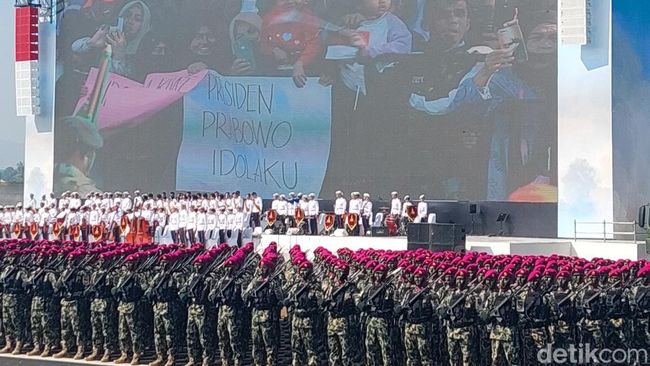Warga ramai menonton proses pelantikan dan rangkaian apel gelar pasukan operasional tersebut. Beberapa warga membawa poster, salah satunya bertuliskan 'Presiden Prabowo Idolaku' yang tersorot di layar berukuran jumbo.