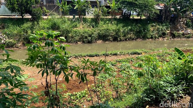 Di sempadan sungai, tepatnya di Jalan Babakan Wadana, pemandangan yang tak biasa terlihat. Lahan yang terbentuk dari sedimentasi itu dimanfaatkan warga untuk menanam ubi hingga singkong. Barisan tanaman hijau tumbuh di tengah aliran sungai yang surut, seolah mengubah fungsi aliran air menjadi kebun darurat.