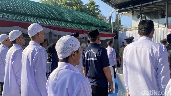 Suasana haru terasa saat momen perayaan HUT ke-80 RI di Lapas Kelas IIB Sukabumi Minggu (17/8/2025). Narapidana berseragam rapi, menanti momen penting penyerahan remisi. Setidaknya ada 358 narapidana mendapatkan remisi umum, 396 napi mendapat remisi dasawarsa, delapan orang dinyatakan langsung bebas hari itu juga.