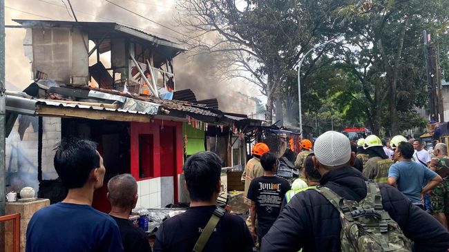 Pantauan detikJabar, Senin (18/8/2025) selain membakar gudang rongsokan, api merembet ke bangunan lainnya seperti warung, kios sol sepatu dan lainnya.