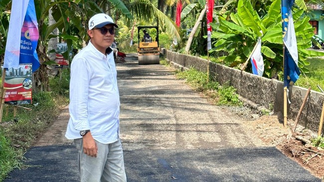 "Karena mungkin saya sering lewat dan aktivitas disini, melihat jalan desa rusak saya bantu bangun dari uang pribadi," ucapnya.