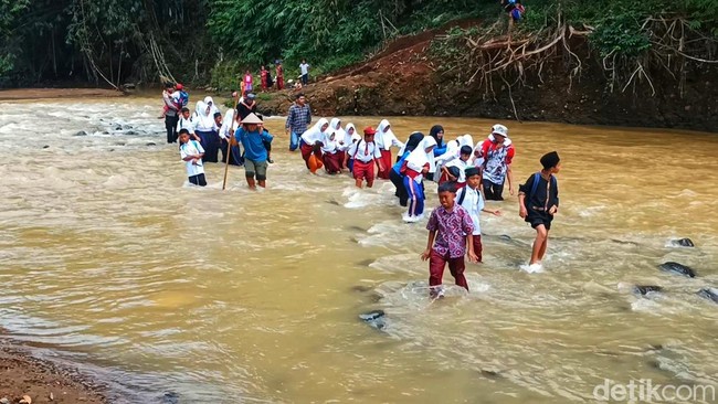 "Harapan saya semoga di sini ke depannya ada lagi pembangunan jembatan ke sini, soalnya kita hampir tiap hari sekolah harus nyebrang kayak gini. Susah, takut kalau airnya besar, apalagi kalau pulang sekolah, kan kalau hujan itu biasanya airnya besar," sambungnya.