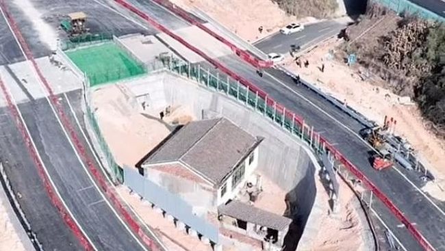 Dilansir dari Independent, jalan tol tersebut dibangun sejajar dengan atap rumah. Alhasil rumah Huang Ping tampak seperti masuk ke dalam lubang bila dilihat dari atas.
